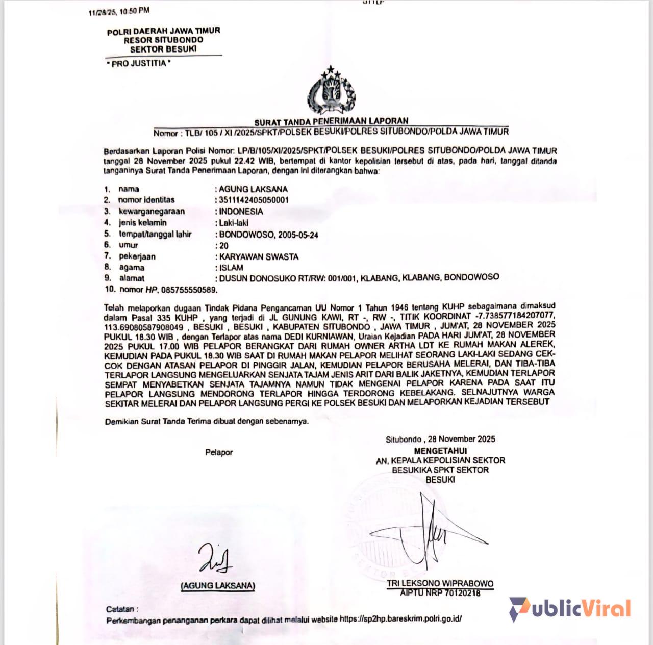 LP/B/105/XI/2025/SPKT/POLSEK BESUKI/POLRES SITUBONDO JAWA TIMUR